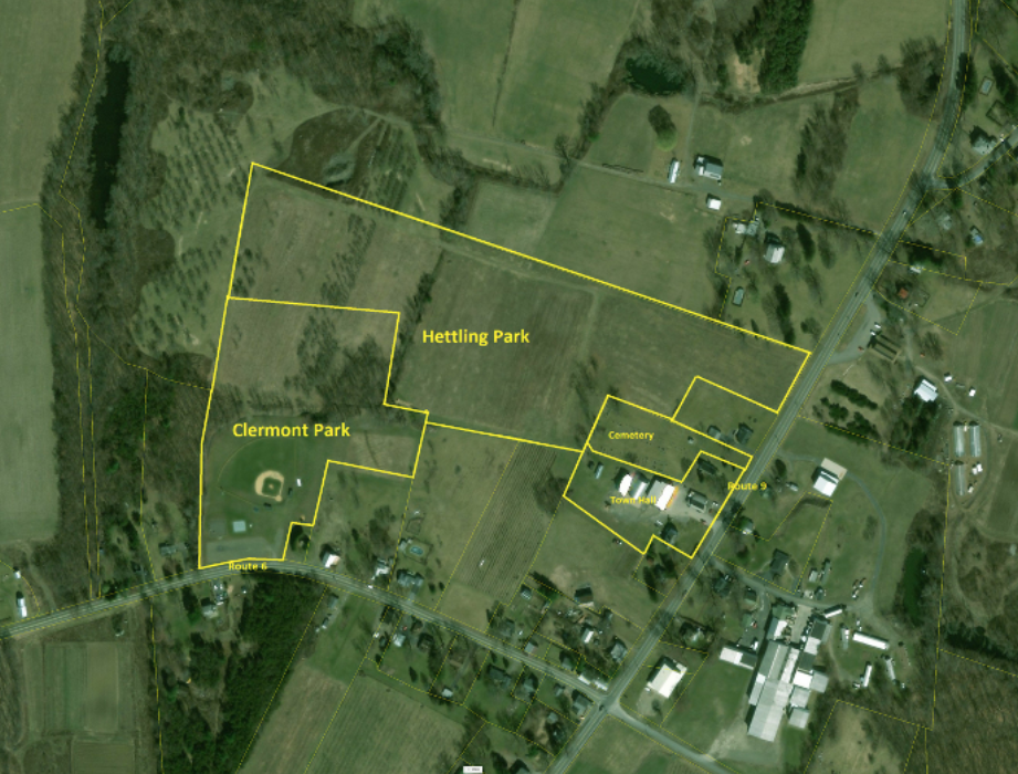 Hettling Park at Clermont, located at 1811 Route 9, in the Town of Clermont, Germantown, New York. It is in the southwestern corner of Columbia County, just across the border from Dutchess County, and it covers about 17 acres. It is a portion of the former Hettling Farm, originally owned by the Hettling family since the 1960’s.